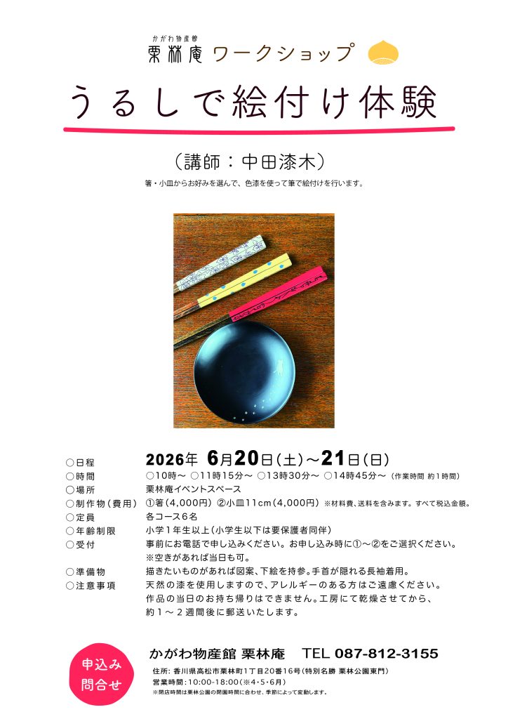 箸、もしくは小皿からお選びいただき、お好みの模様やイラストを描いて自分だけの漆器を作ってみませんか。