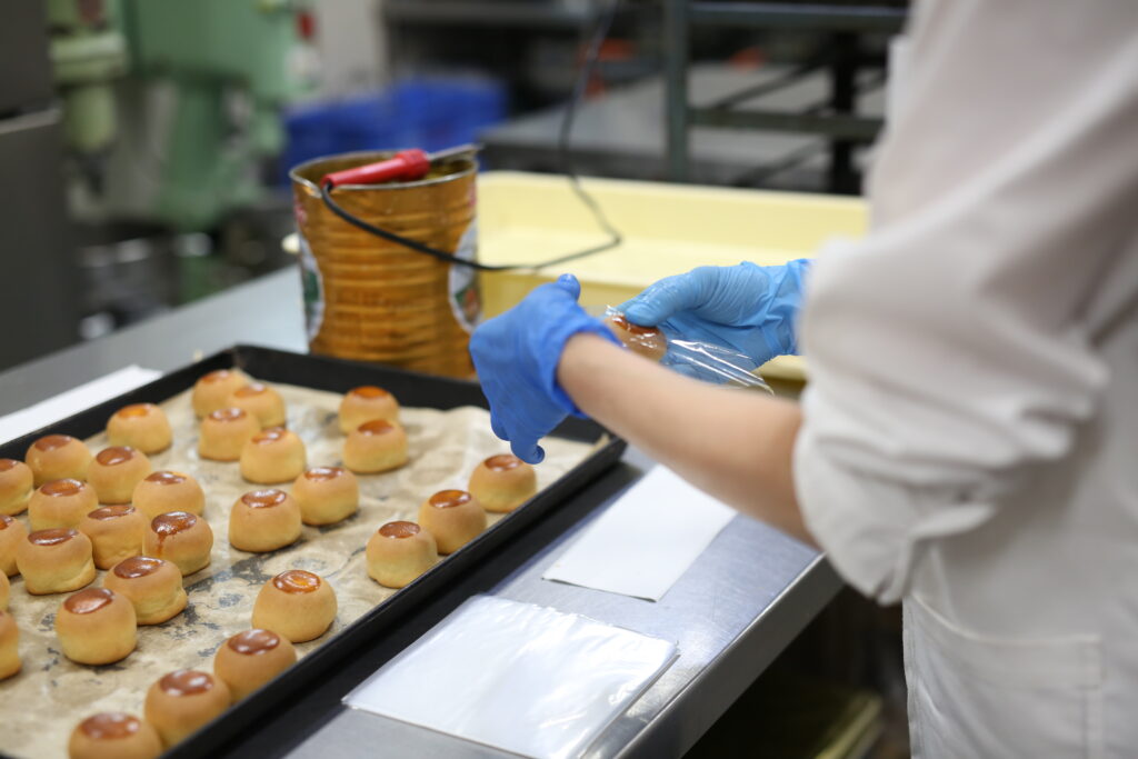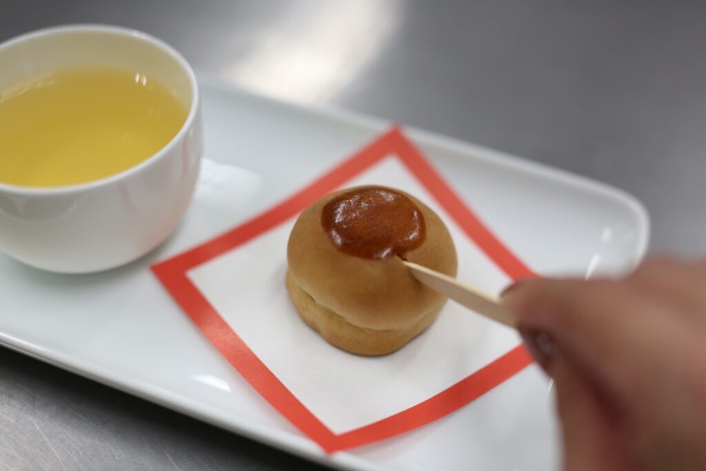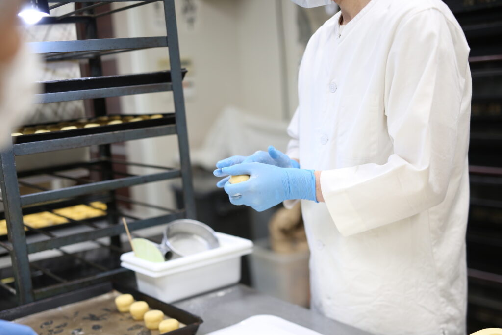 生菓子に近いしっとり感を生み出すためには、生地の薄さが重要だとか。機械では再現できないことから、一つ一つ手作業であんを包んでいます。