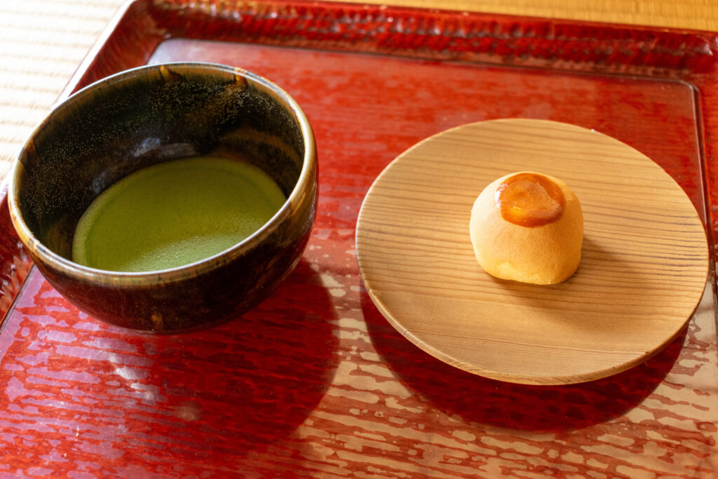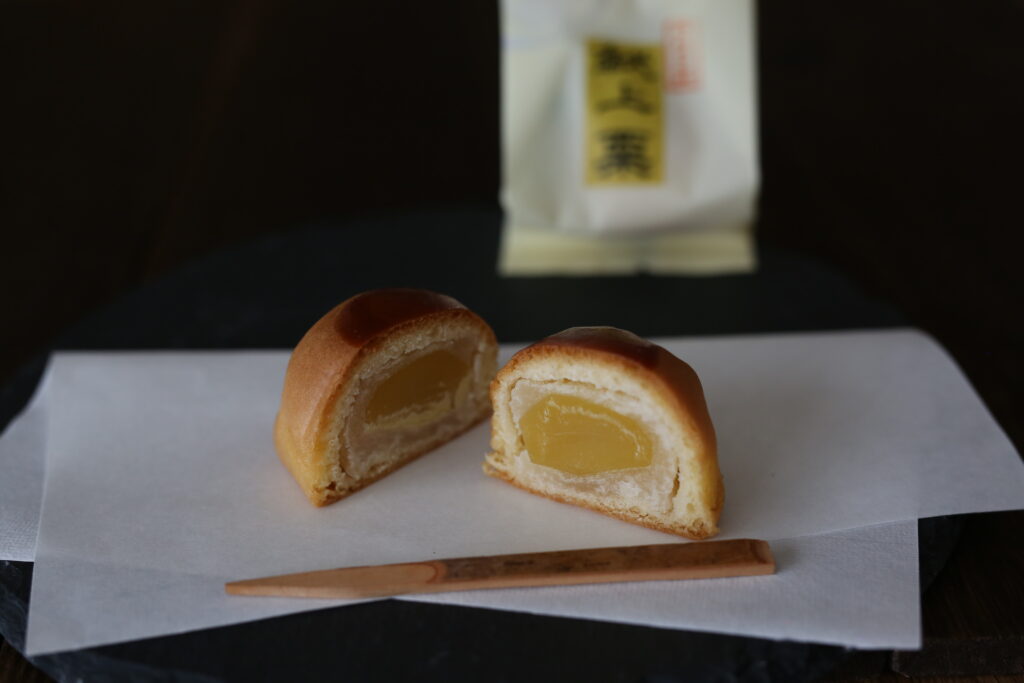 全国の和菓子屋さんが栗まんじゅうを作っていますが、献上栗のこだわりは「生菓子に近い栗まんじゅう」であること。生地は薄くて、中の白あんとなじみ、しっとりとした食感が特徴です。「じつは、栗まんじゅうのパサパサとした食感が苦手だったのですが、結婚してここの栗まんじゅうを食べたときに、おいしいなぁと思ったんです。お抹茶にもよく合うんですよ」と純子さん。